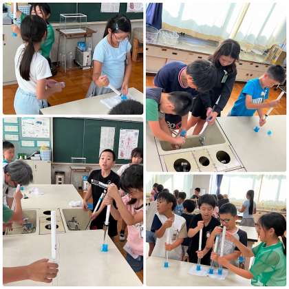 理科の実験で閉じ込めた水を押した時の様子を観察しました!