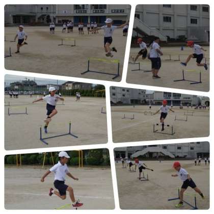 ミニハードルでは跳び方の練習をしています!
