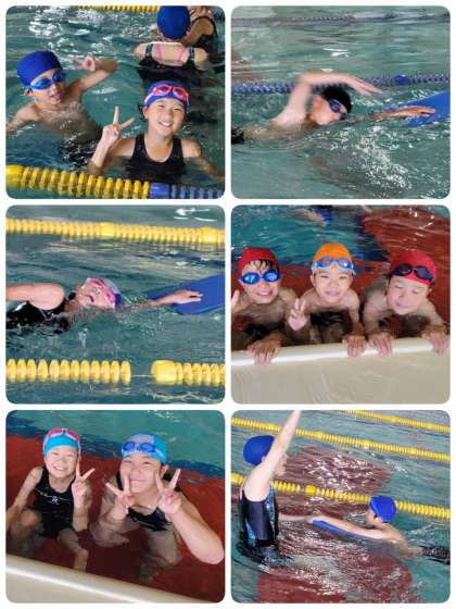 久しぶりの水泳の授業。笑顔がいっぱいです。