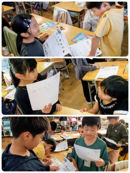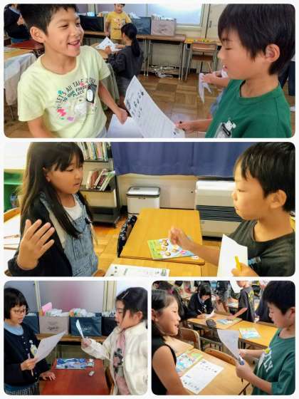 お互いの好きな色やフルーツ、スポーツについて聞き合いました。
