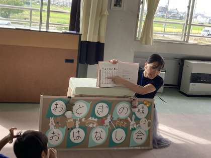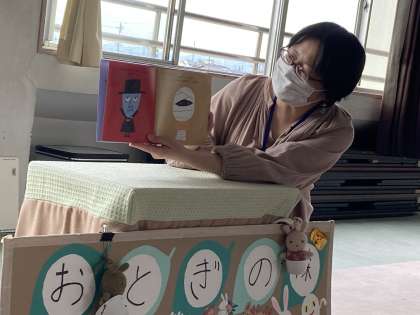 長放課にふれあいルームで、ラビットさんの読み聞かせがありました。