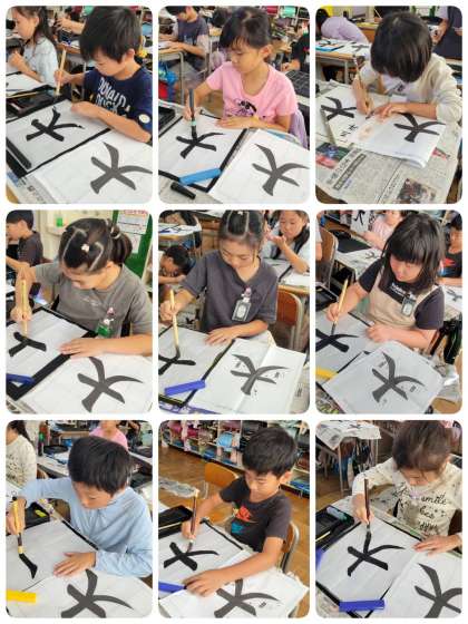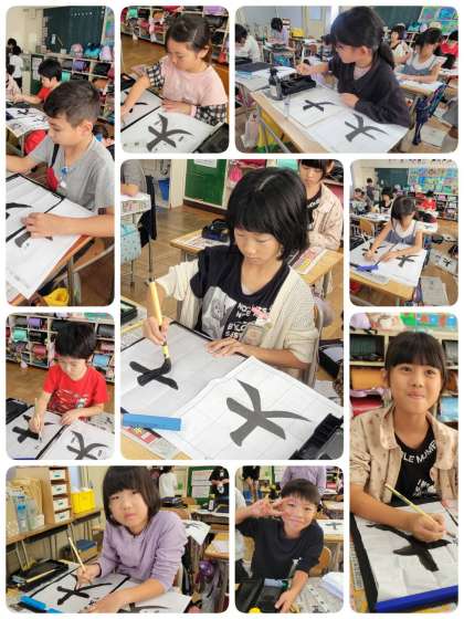 書写の授業で「大」を書きました。