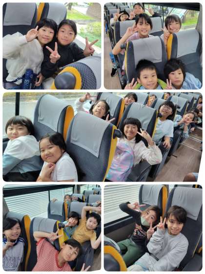 待ちに待った遠足。あいにくの天気ですが、モリコロパークに向けて出発しました。