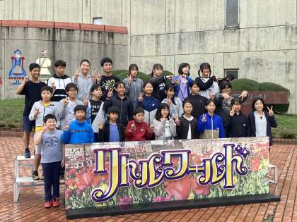 リトルワールド到着!少し寒いですが、雨は降っておらず、笑顔で学級写真を撮りました!