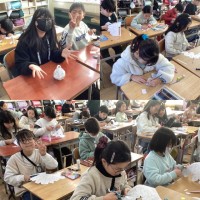 折ってある紙に書いてあるえんぴつの線を、はさみで切ります。