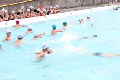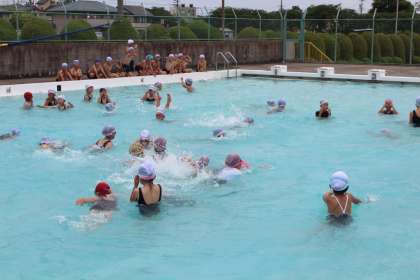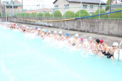 プール開きの今日は、安全のためのルールを全員で確認し、プールに入って少しだけ運動をしました。