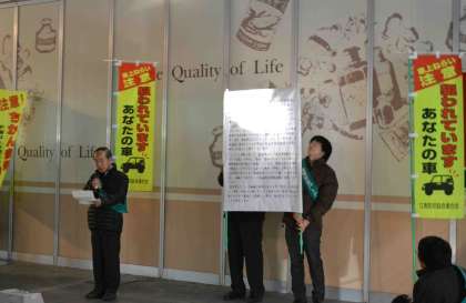 岩倉駅で、市役所の方や警察署の方、学校の先生やPTAの方々が集まり、犯罪撲滅啓発運動が行われました。代表の方が岩倉市の安全宣言を読み上げ、犯罪のない安全で安心な街を作っていくことを呼びかけました。