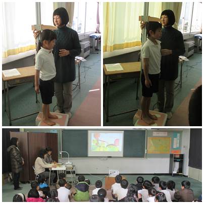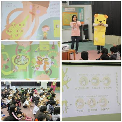 身体測定の後には、ラビットのみなさんに「ノウちゃん」のお話の読み聞かせをしていただきました。