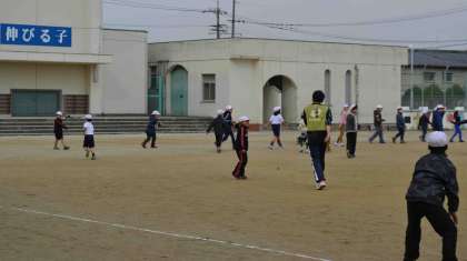 全校ケイどろ大会も3日目になりました。逃げる方も上手に逃げますが、追いかける方も上手に追いかけ、白熱したゲームになっています。先生たちも警察になって追いかけています。