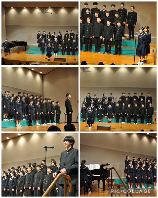 本日は第3学年合唱発表会が行われました。どのクラスも真剣に精一杯歌う姿がみられました。今日を迎えるにあたって、クラスで多くの困難や葛藤があったのではないでしょうか。人前に立つ緊張で、100%の実力を発揮した合唱を披露することは難しいと感じたかもしれません。しかし、約2ヶ月の間クラスの仲間と作り上げた合唱はかけがえのないものとなったはずです。クラスの仲間とひとつのものをつくりあげる機会はなかなかありません。クラスの仲間とつくりあげる喜びを大切にして、あと残り少ない学校生活を過ごしていきたいですね。
