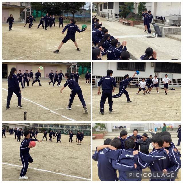 6時間目に学年レクとして学級対抗ドッジボール大会を行いました。