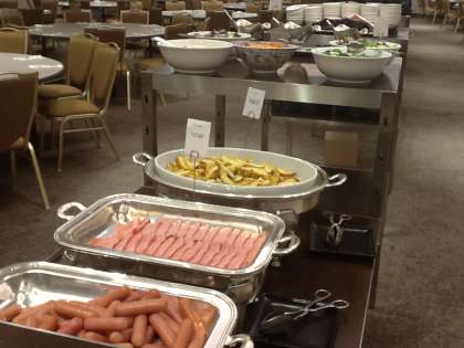 部屋の片付けを済ませた班から荷物を持って朝食会場へ集合しています。