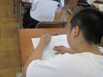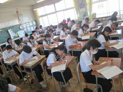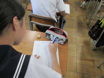 今朝の学習の時間を使って、数学のチャレンジテストを行いました。評価項目は、式を展開することができるか、式を因数分解することができるか、数を素因数分解することができるか、でした。これらの事柄は、これから学習予定の二次方程式を解くことができるようになることと、深く関係しています。