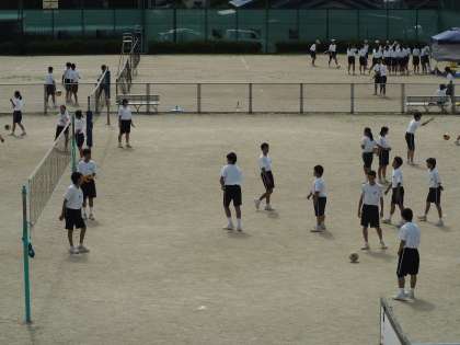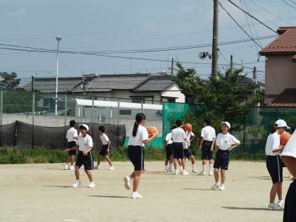 今日から3日間の保護者会のため、いつもより長い時間、部活動をすることができます。じりじりと照りつける日差しの中、1年生は一生懸命練習に励んでいました。先輩の指示のもと、てきぱきと動く姿も見られ、授業の時とは違う表情に出会うことができました。