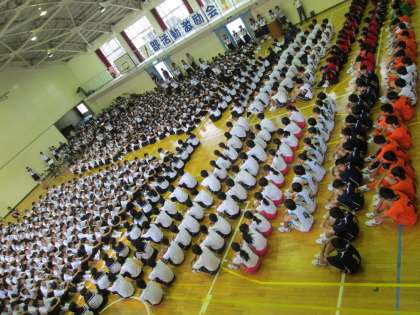 生徒会行事の一つ「部活動激励会」が行われました。文化系の部長は、作品展や演奏会で、人の心を魅了する作品・演奏を披露することを宣言しました。運動系の部長は、大会で最善を尽くすことを宣言しました。