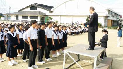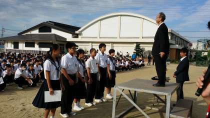 天候にも恵まれ久しぶりの朝礼となりました。生徒会などの後期の任命式、また、先日行われた科学の甲子園ジュニア大会の表彰がありました。