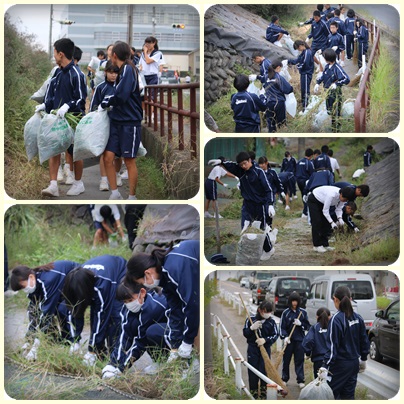 5・6限目にクリーンキャンペーンが行われました。第二学年は通学路をメインに、名草線沿い、総合体育文化センター付近まで、除草作業をしました。30リットルのゴミ袋をなんと学年で300袋も使いました。
