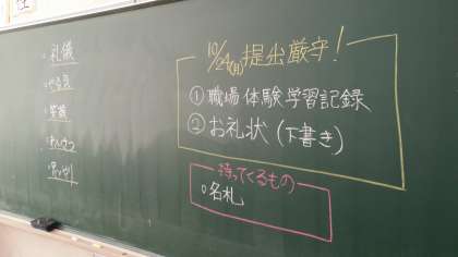 6時限目に明日から行われる、職場体験学習にむけて最終確認を行いました。3日間の心構えや、おもてなし講座で学んだことを思い出し、貴重な体験のできる3日間にしてほしいと思います。
