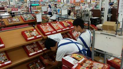ものつくり分野の子どもたちですが、本日はピアゴ布袋店にて、職場体験学習を行っています。仕事内容はお歳暮のブース作りと、陳列整理です。