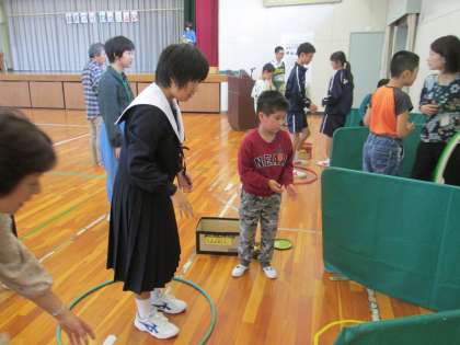 五条川小学校で、おまつりワッショイがありました。「フライングUFO」という名前のお店を出して、小学生を楽しめることができました。生徒たち自身も、各小学校が出すお店でボーリングをしたり、卓球玉を紙コップに入れたり、マジックハンドで景品をとるゲームに楽しんでいました。保護者の方にも参加してもらい、1日楽しく過ごすことができました。参加していただいた保護者の皆様、会場で運営してくれた五条川小学校の皆様、ありがとうございました。