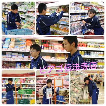 ピアゴ伝法寺店で職場体験学習をさせていただいています。
