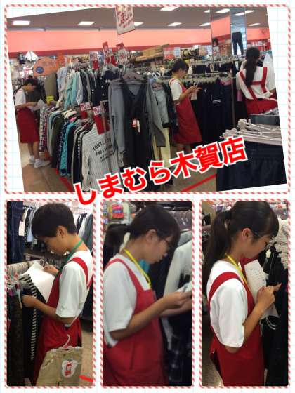 しまむら木賀店にて職場体験をしています。