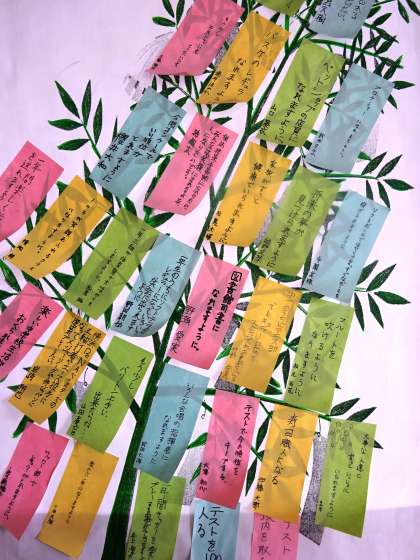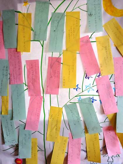 健康に過ごせますように、将来の夢がかないますように、世界が平和でありますように…色々な願いが短冊に綴られています。