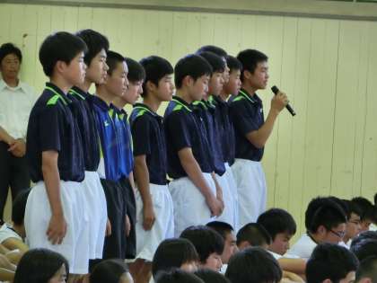 運動部とブラス部は夏の大会に向けての決意表明を、他の文化部は10月のコスモス祭における発表の決意表明を行いました。