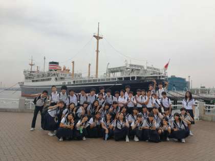 中華街での食事の前に、氷川丸前で記念撮影をしました。