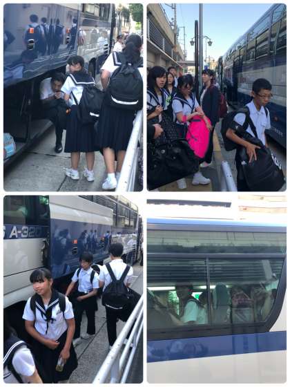 荷物をバスに積み込み、岩倉中に向けて出発しました