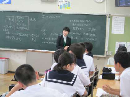 現在、2名の実習生が本校において教育実習を行っています。本日1名の実習生が2年6組で道徳の授業を行いました。周りの人たちに支えられて生きていることに感謝し、かけがえのない命を大切にすることを考えました。