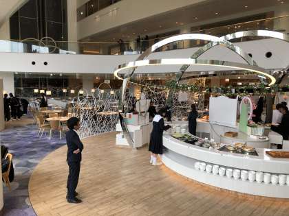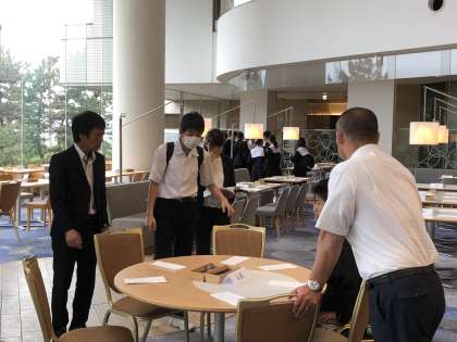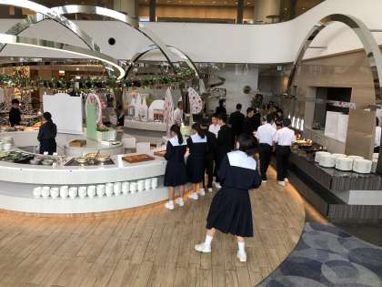 2日目の朝を迎えました。朝食会場の様子です。みんな元気そうです。天気は曇りです。