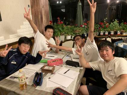 7組です。ペンションにお世話になっています。ふれあいタイムはこれからです!みんなとっても楽しそうです!