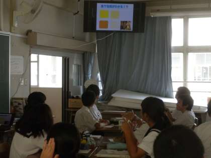 今日は、美術の授業で色の効果を実感させたり、英語の授業でフラッシュ型教材を用いて英語表現を学習したりする場面に出会いました。