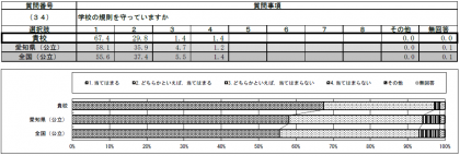 質問紙調査の結果を全国と比較すると、いくつか本校の傾向が見えてきます。