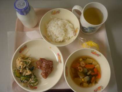 今月は東南アジアから。今日の献立は、タイ料理のガイヤーン、ヤムウンセン、トムヤンクンでした。