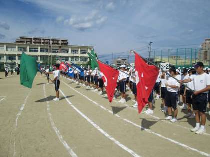 本日5・6時間目に 体育大会の予行練習を行っています。入場行進・選手宣誓の様子です。