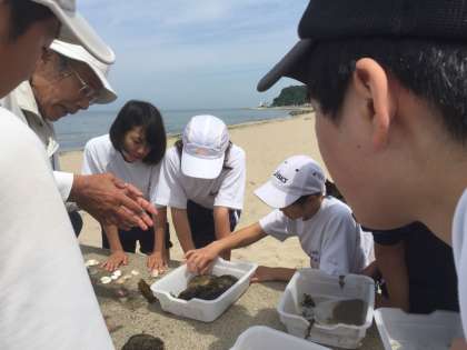 > 磯観察ではアメフラシを触ったり貝を集めたりなど、美浜ならではの自然を体感しています。