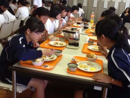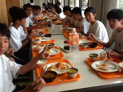 前半のクラスが朝食を摂りました。