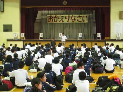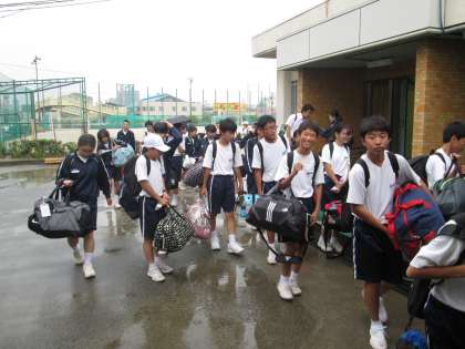 2年生が、美浜から岩中に無事帰ってきました。大きなバッグを持ち、体育館に入っていく足取りは、疲れを感じさせない堂々としたものがありました。明日は、おやすみになります。ゆっくり体を休めて、美浜から持って帰ってきたパワーで、がんばっていきましょう。おつかれさまでした。