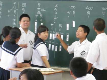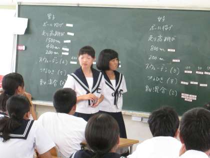 今日、9月に実施予定の体育大会に向けて、選手決めをしました。生徒一人一人が「走・跳・投」力の限り、がんばられることを期待しています。また、体育大会当日、おじいさま・おばあさまにも、お孫さんのがんばる姿を見ていただければ幸いです。多数の保護者様のご来場をお待ちしています。