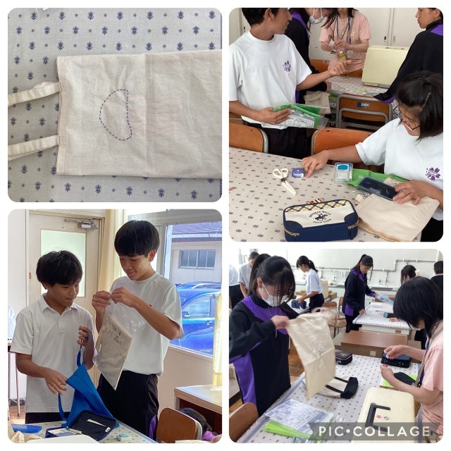 2年生家庭科 公開日 2025/09/29 更新日 2025/09/29 南中 JUST NOW ! 手提げ袋を作っています。今日はミシンで縫い、袋の形にしました。あとは、模様を刺繍して仕上げていきます。スタディーサポートのみなさんの力もあり、作業は順調に進んでいます。