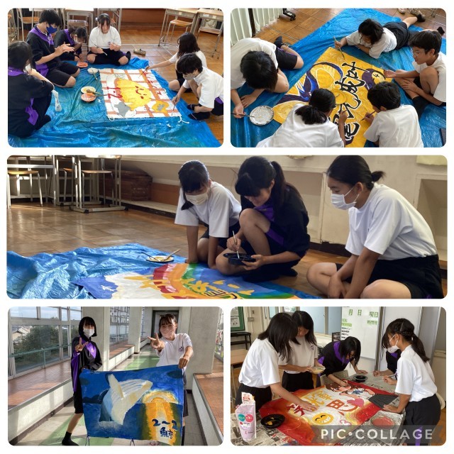 学級旗も応援も最後の調整をしています。細かいところも息を合わせ、笑顔で取り組んでいました。