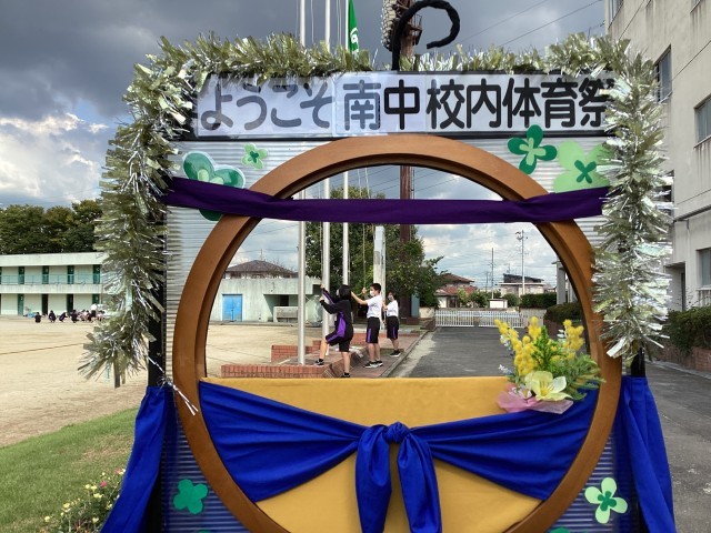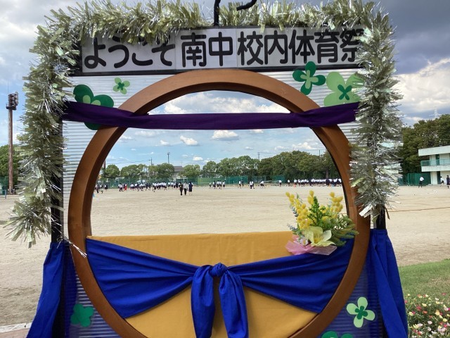 図書ボランティアさんが作ってくださった、南魂くんの顔ハメパネル越しにパシャリ!