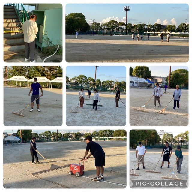 子どもたちが帰った後のグラウンドには、明日のために整備する先生たちの姿がありました。少しでもよい状態で、子どもたちが活躍できるように願っての姿です。