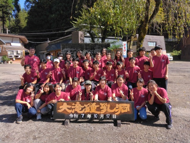 自分たちが過ごした自然園をきれいに掃除をして退所式を終えた後は、大滝鍾乳洞を見学しました。