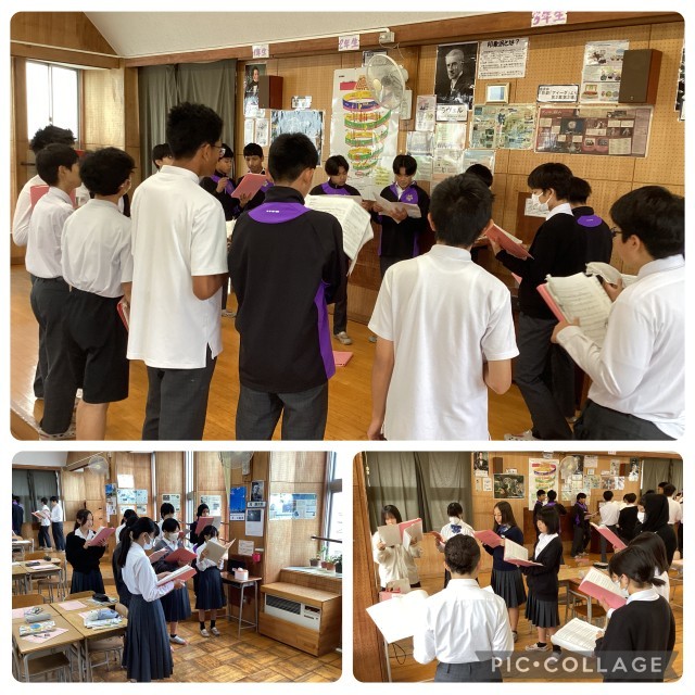 2年生 音楽 公開日 2025/10/22 更新日 2025/10/22 南中 JUST NOW ! 音楽の時間は、合唱練習です。音程や音の長さなど、細かいところを修正して、みんなで声を揃えています。合唱フェステバルまでに、心を届けられる歌になることを願いまま。