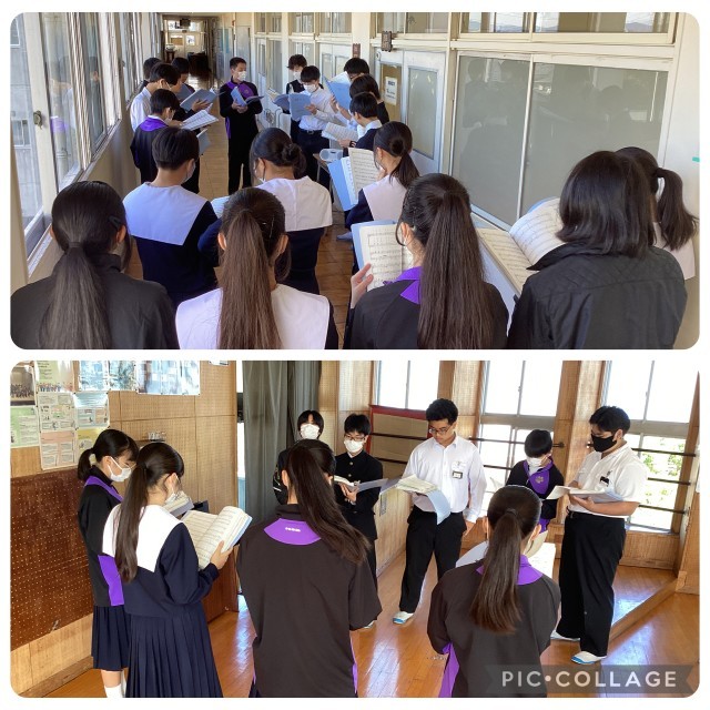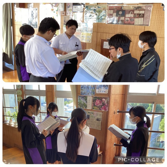 合唱練習です。各パートに分かれて音の確認をしたあとは、2つのパートが声を合わせています。ちょっとした歌い方の工夫や声の出し方など、徐々に気をつける内容も細部に渡ってきました。仕上がりがますます楽しみになりました。