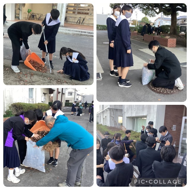2学期は、体育大会、合唱フェス、南フェス、定期テストと行事が続き、子どもたちも忙しい日々を過ごしました。ようやく少し落ち着いたところで季節は秋から冬へ。今日のちょこボラは、みんなで落ち葉はきをしました。