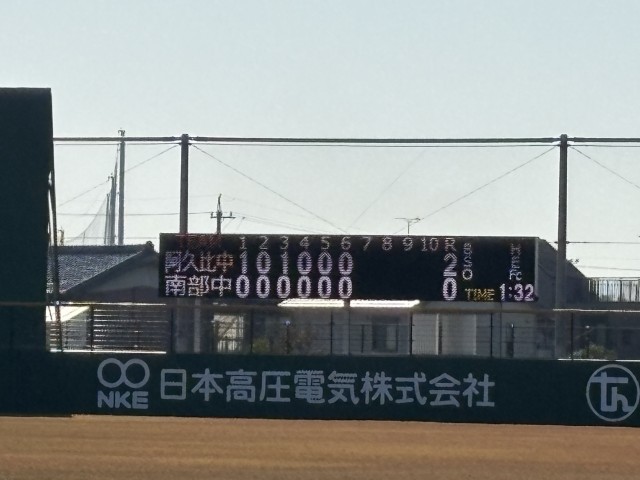 先ほど、阿久比中学校との2回戦が終わりました。1回表に先制点を取られ、裏にはチャンスを作るもあと一本が出ない苦しい試合展開となりました。結果は2ー0で負けてしまいましたが、次につながる経験を積むことができたのではないかと思います。保護者の方は二日間送迎そして応援をありがとうございました。